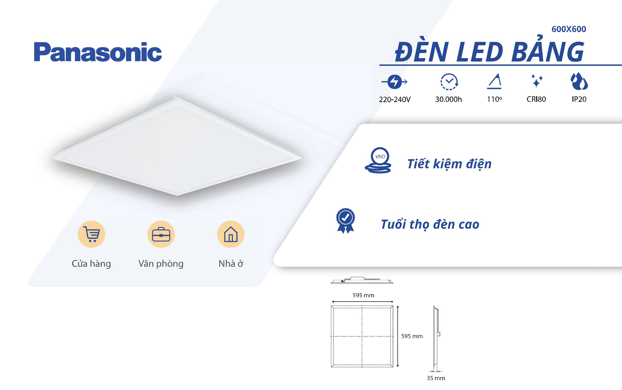 ✅Panasonic — Đèn LED panel 600×600 Panasonic là Thương hiệu đèn LED uy tín từ Nhật Bản, nổi tiếng với chất lượng ánh sáng hoàn hảo, tuổi thọ bền bỉ, khả năng tiết kiệm điện năng, cũng như thiết kế sang trọng, phù hợp với nhiều không gian.
